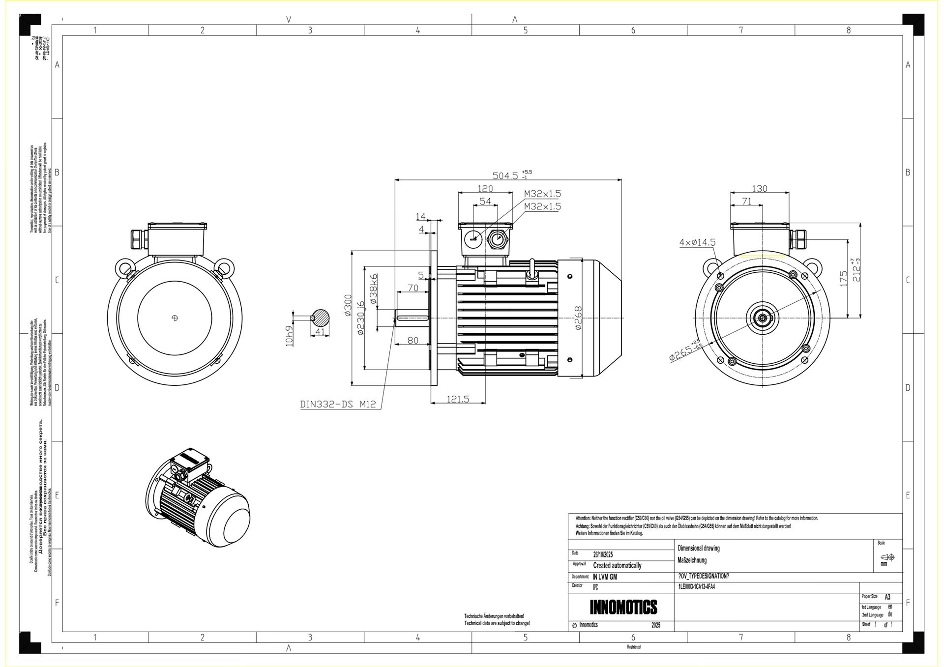 7.5KW, 2POLE, FS 132S, Class F, IP55, IMB3, IE3, ASL1000m, 400/690V, IC411