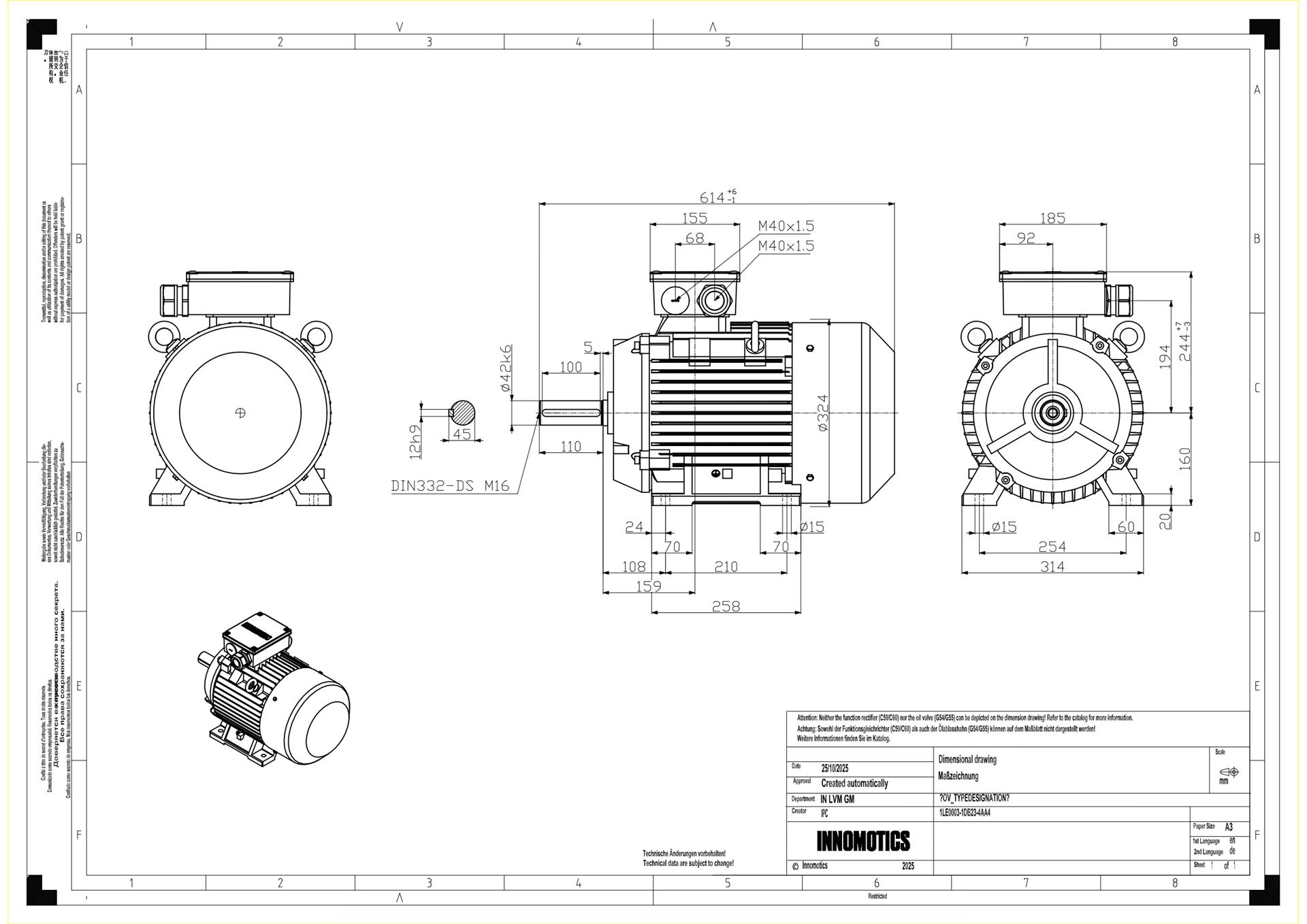 11KW, 4POLE, FS 160M, Class F, IP55, IMB3, IE3, ASL1000m, 400/690V, IC411